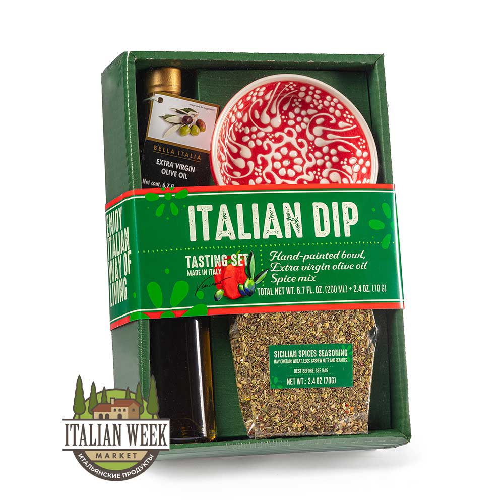 Набор подарочный ITALIAN DIP (керамическая тарелка, масло оливковое, приправа по-сицилийски)