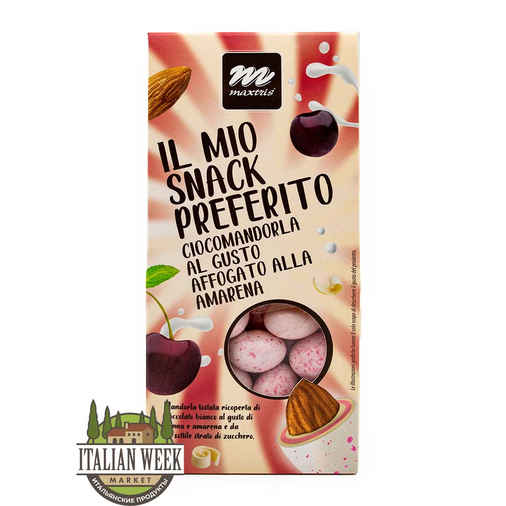 Миндаль обжаренный в белом шоколаде со вкусом вишни IL MIO SNACK PREFERITO, MAXTRIS, 150 г (карт/кор)
