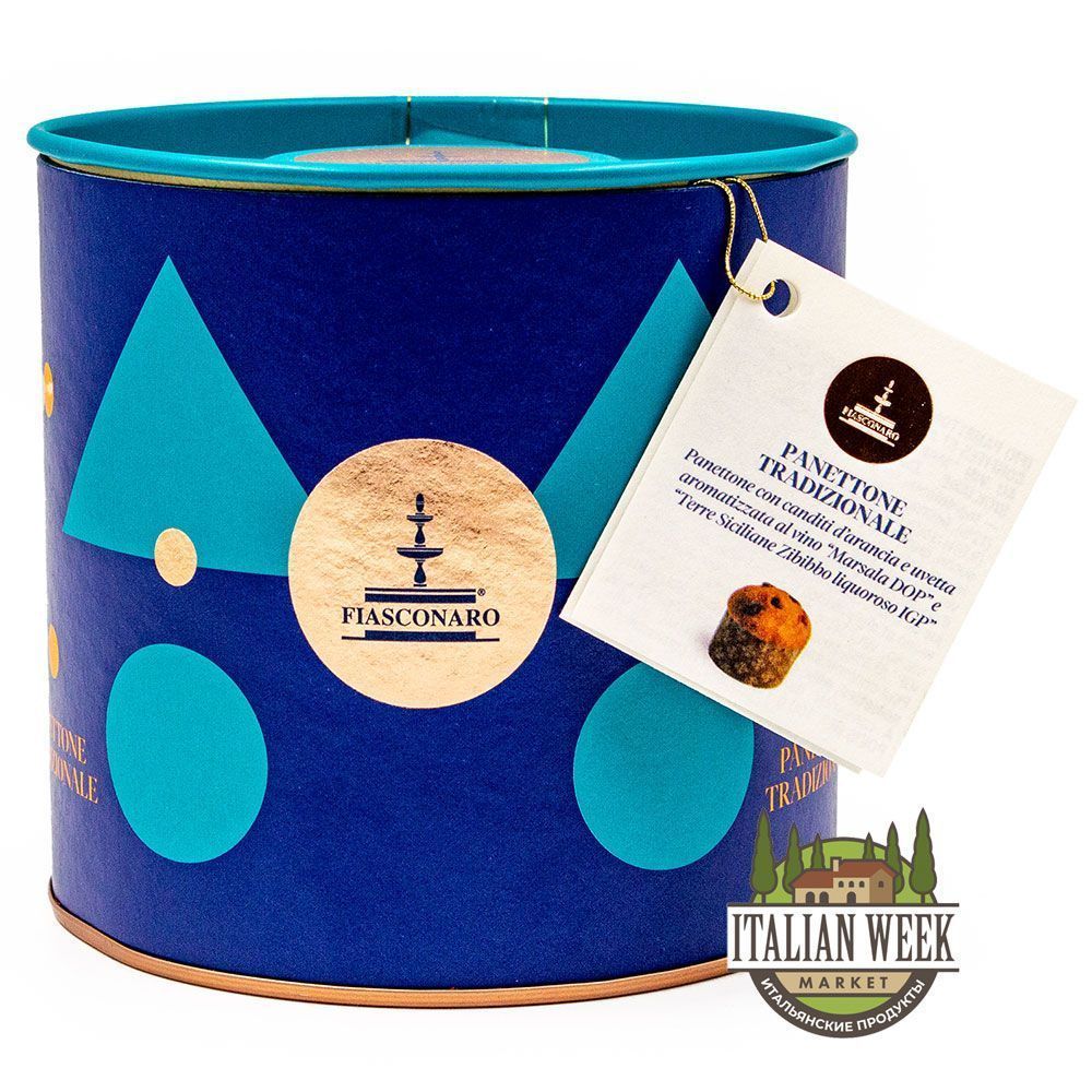 Традиционный панеттоне из знаменитого теста Fiasconaro со свежими апельсиновыми цукатами и изюмом, ароматизированными вином Марсала DOP и Ликером Терре Сичилиане Зибиббо IGP, упакованный в элегантную ткань.