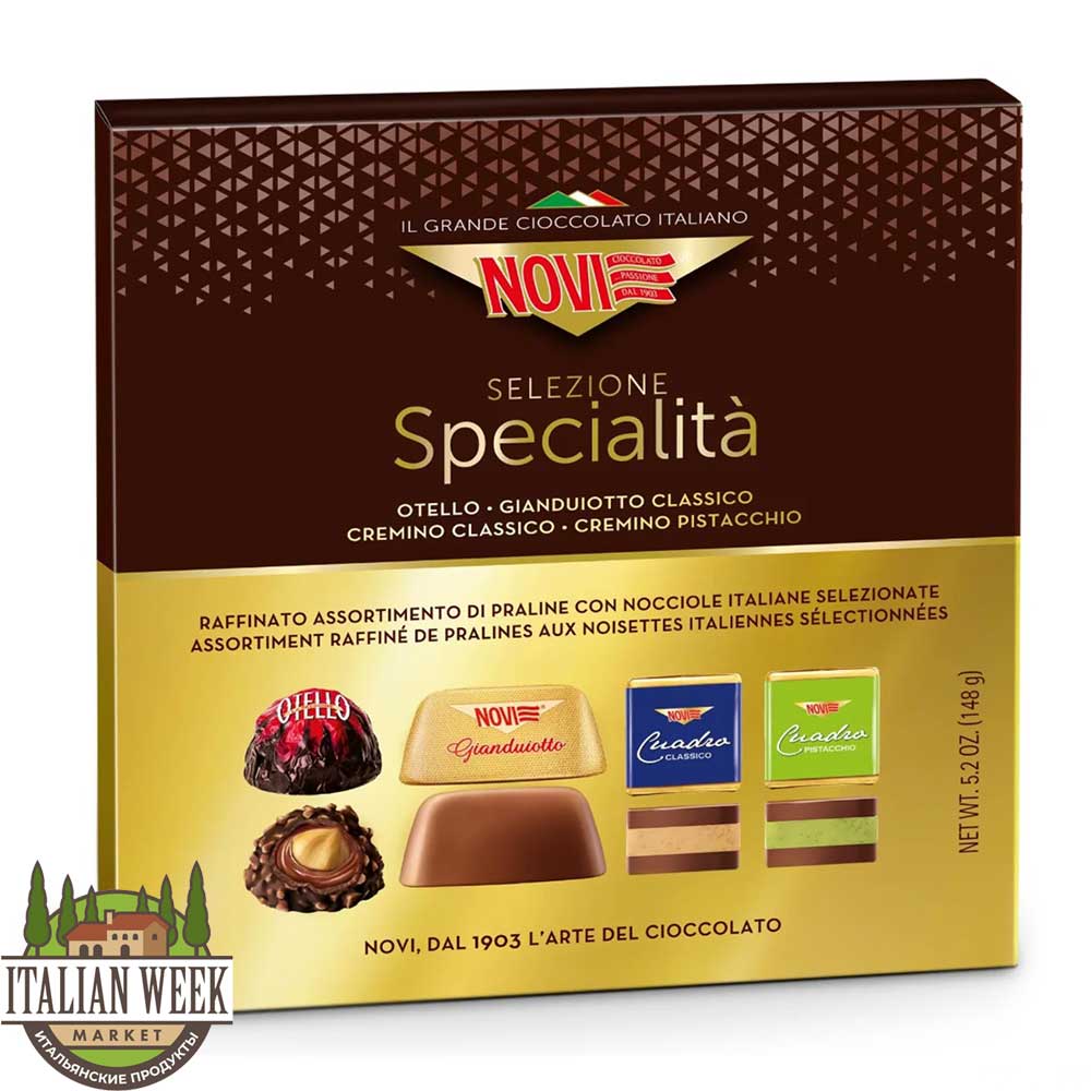 Изысканное ассорти пралине от традиционного дома Novi, представленное в новой праздничной упаковке - идеальный подарок к праздникам.