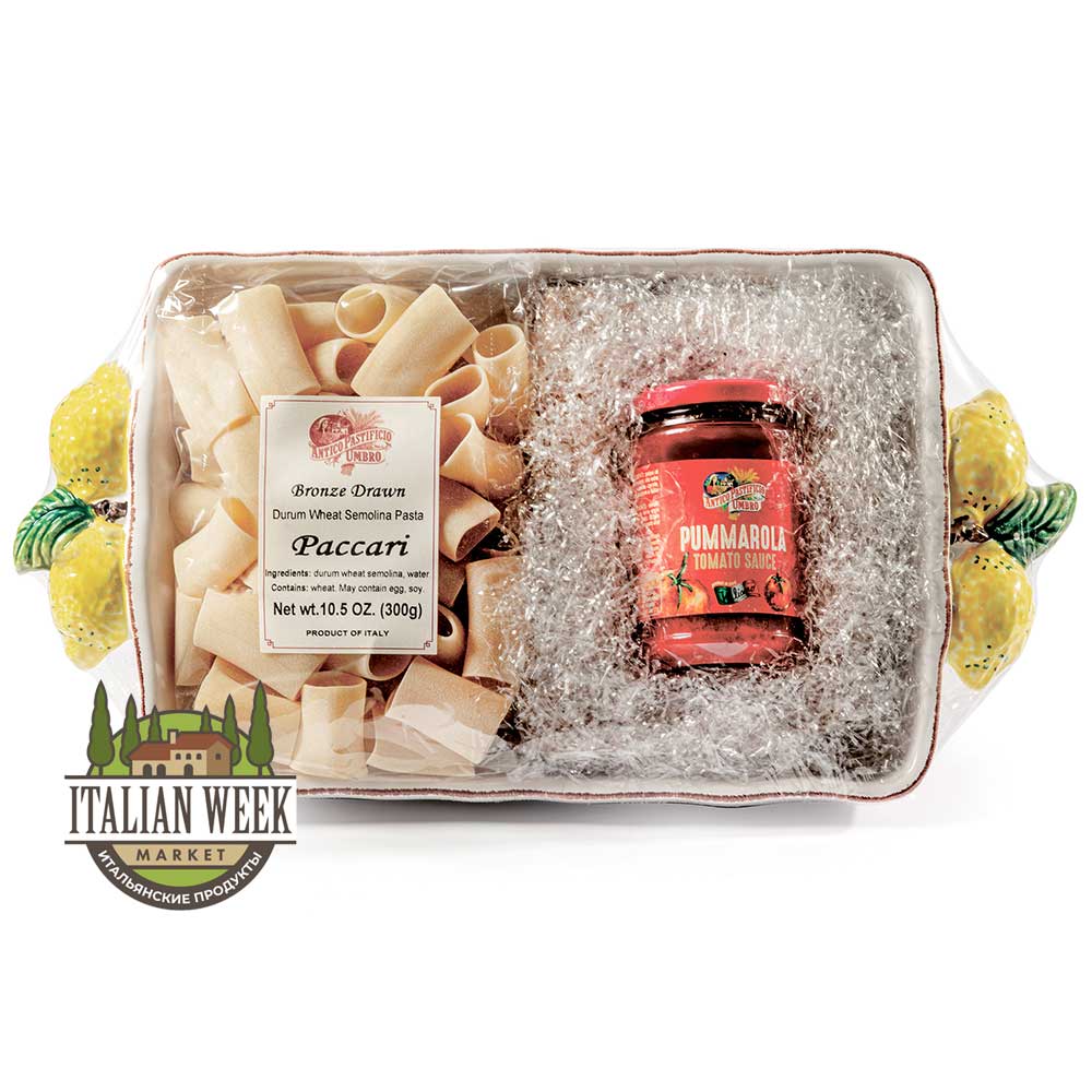 Набор подарочный (керамическая форма для запекания с лимонами, соус по-неапольски, паста паккари)