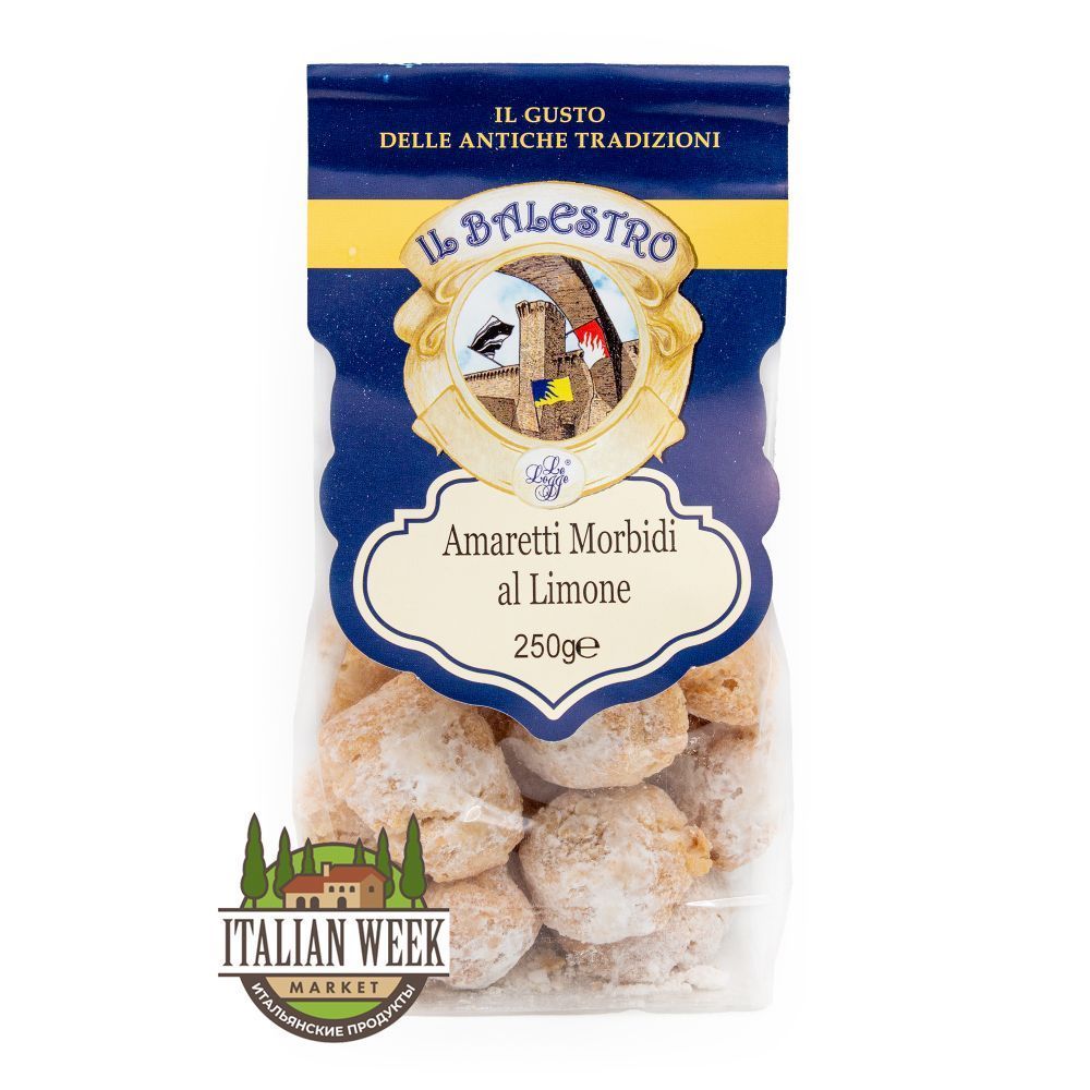 Печенье Амаретти миндальные мягкие с лимоном, IL BALESTRO, 250 г (пл/пак)