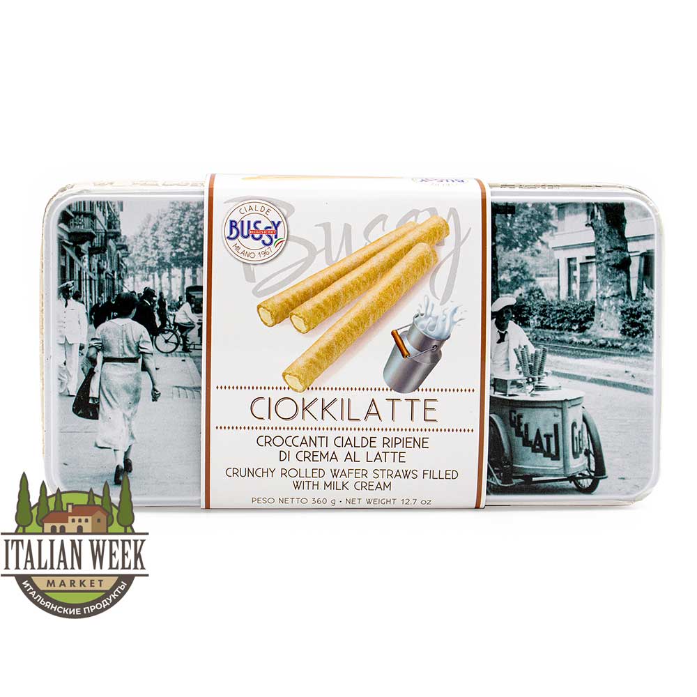 Хрустящие вафельные трубочки с молочным кремом CIOKKILATTE, Bussy, 360 г (винтажная ж/б)
