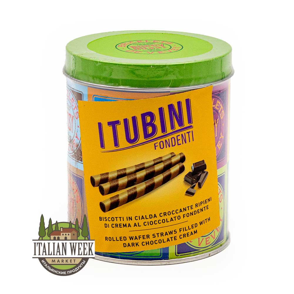 Хрустящие вафельные трубочки с кремом из тёмного шоколада TUBINI FONDENTI, Bussy, 280 г (туба ж/б)