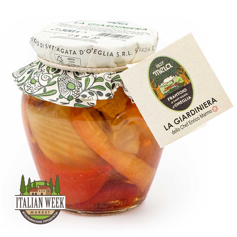 «Джардинера» (La Giardiniera), что в переводе с итальянского означает «садовница». Это настоящая миниатюрная огородная симфония в банке, собранная и аранжированная по секретному рецепту шефа Энрико Мармо.