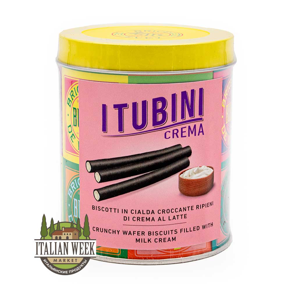 Хрустящие вафельные трубочки с начинкой из молочного крема TUBINI CREMA, Bussy, 280 г (туба ж/б)