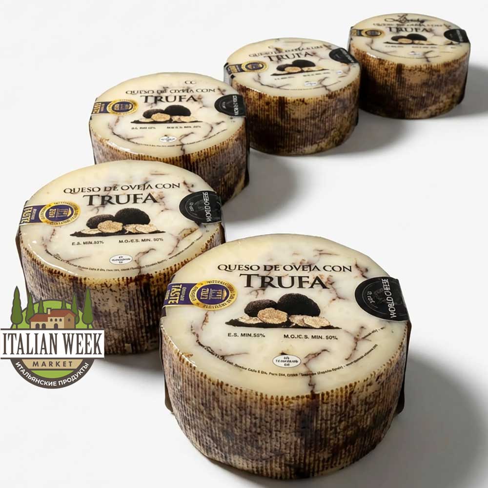 Сыр выдерживается в течение пяти месяцев с добавлением черного трюфеля, что обеспечивает идеальный баланс. Идеальное дополнение к ветчине, мясному ассорти и вину. Вкус и запах трюфеля сохраняется в течение нескольких минут.